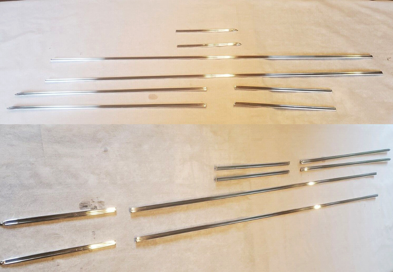2 Door, Beltline Trim Long 8 Piece Set and Hardware.